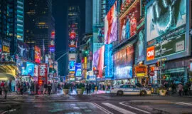 times square, New York at with lights on - Cadillac Travel